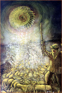 Pastore con gregge e sole